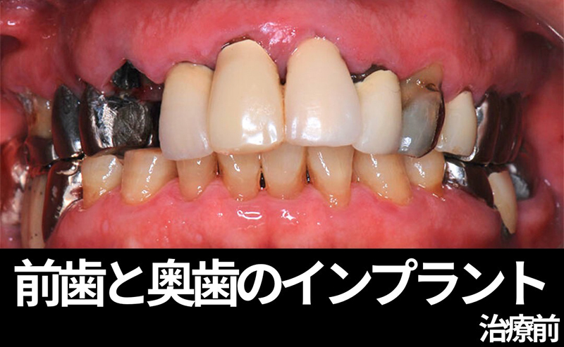 | 治療内容 | 奥歯2本のインプラント治療・前歯1本のインプラント治療・骨造成・17本のセラミック治療(自分の歯)・かみ合わせのずれを治す治療 |